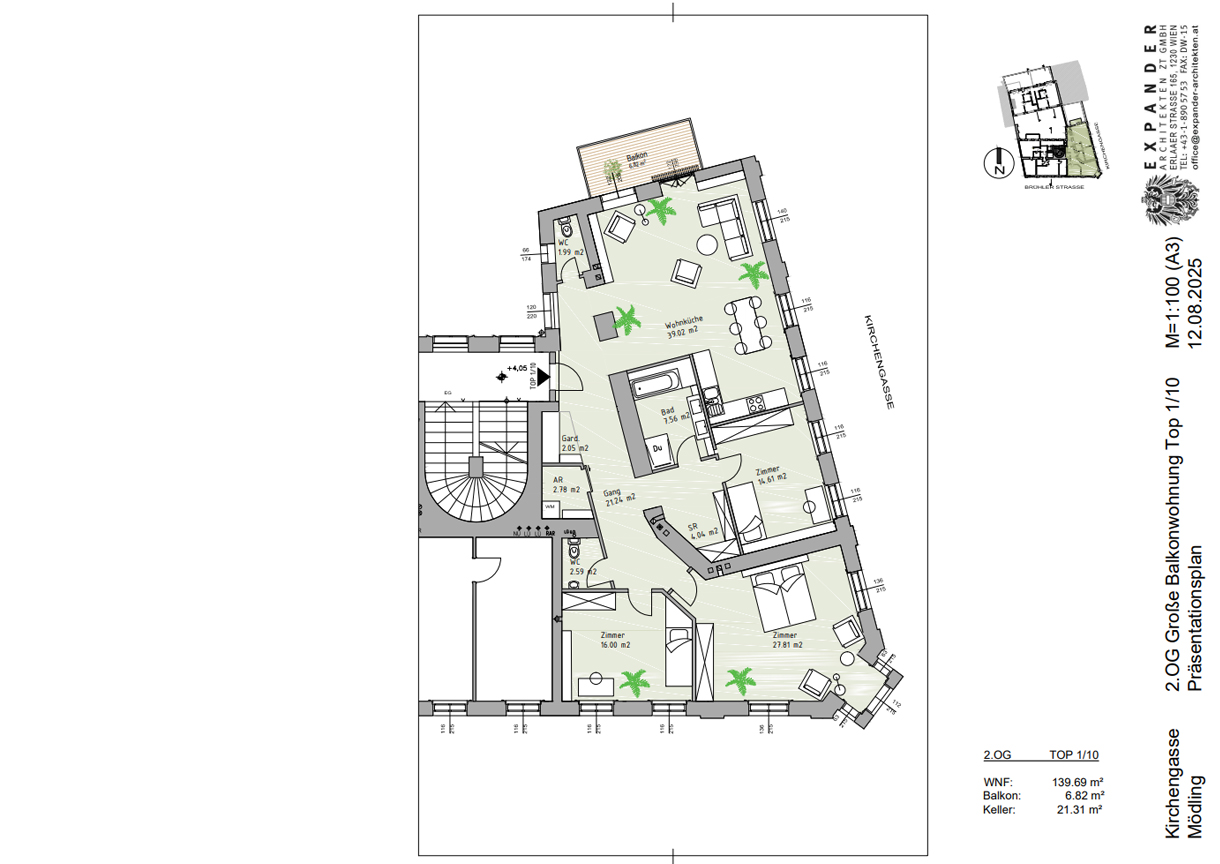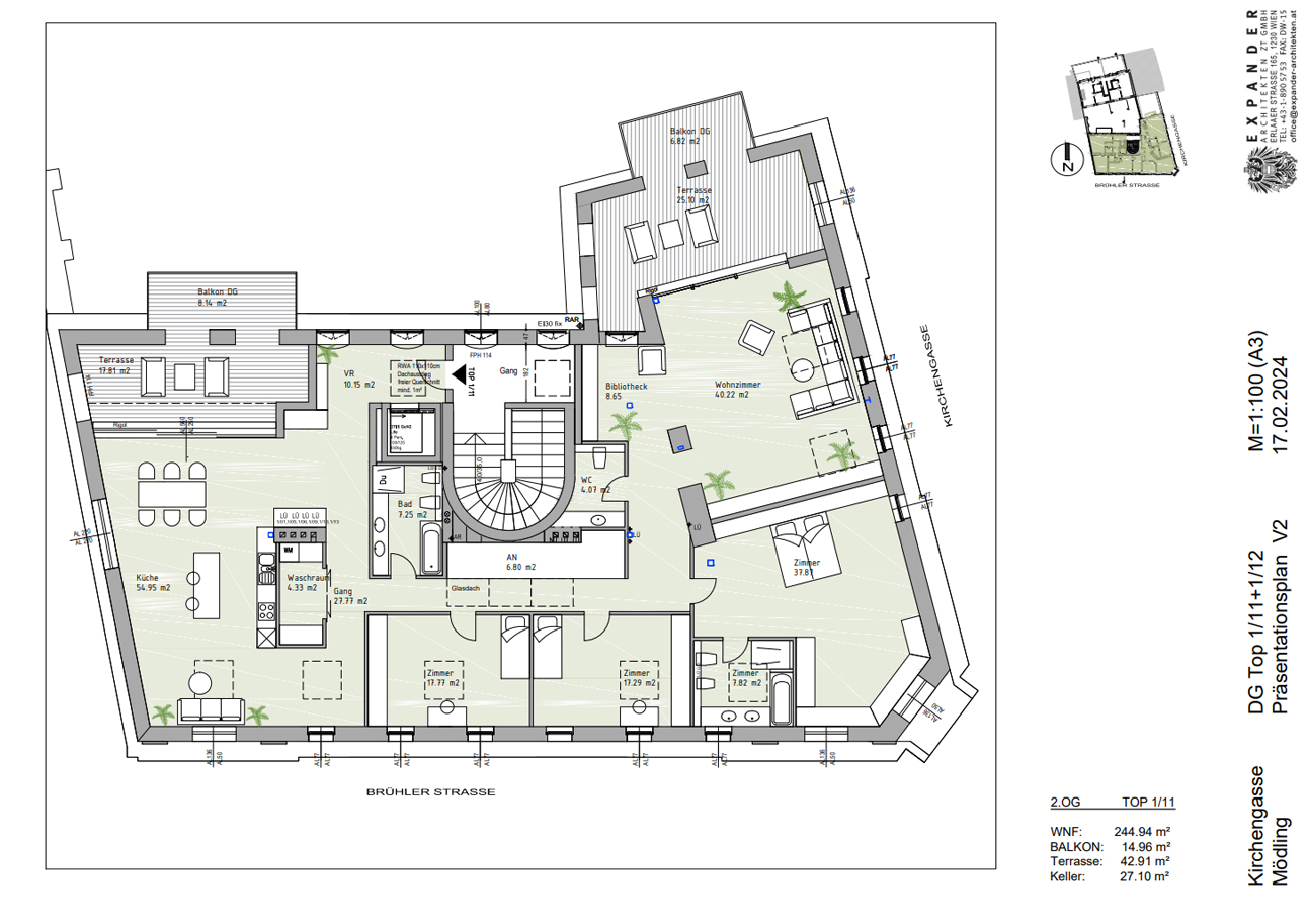 | 1/11 + 12 | DG | 5 | 244,94 | 14,96 (Balkon) + 42,91 (Terrasse) | 2.500.000 € | Verfügbar | Plan |
