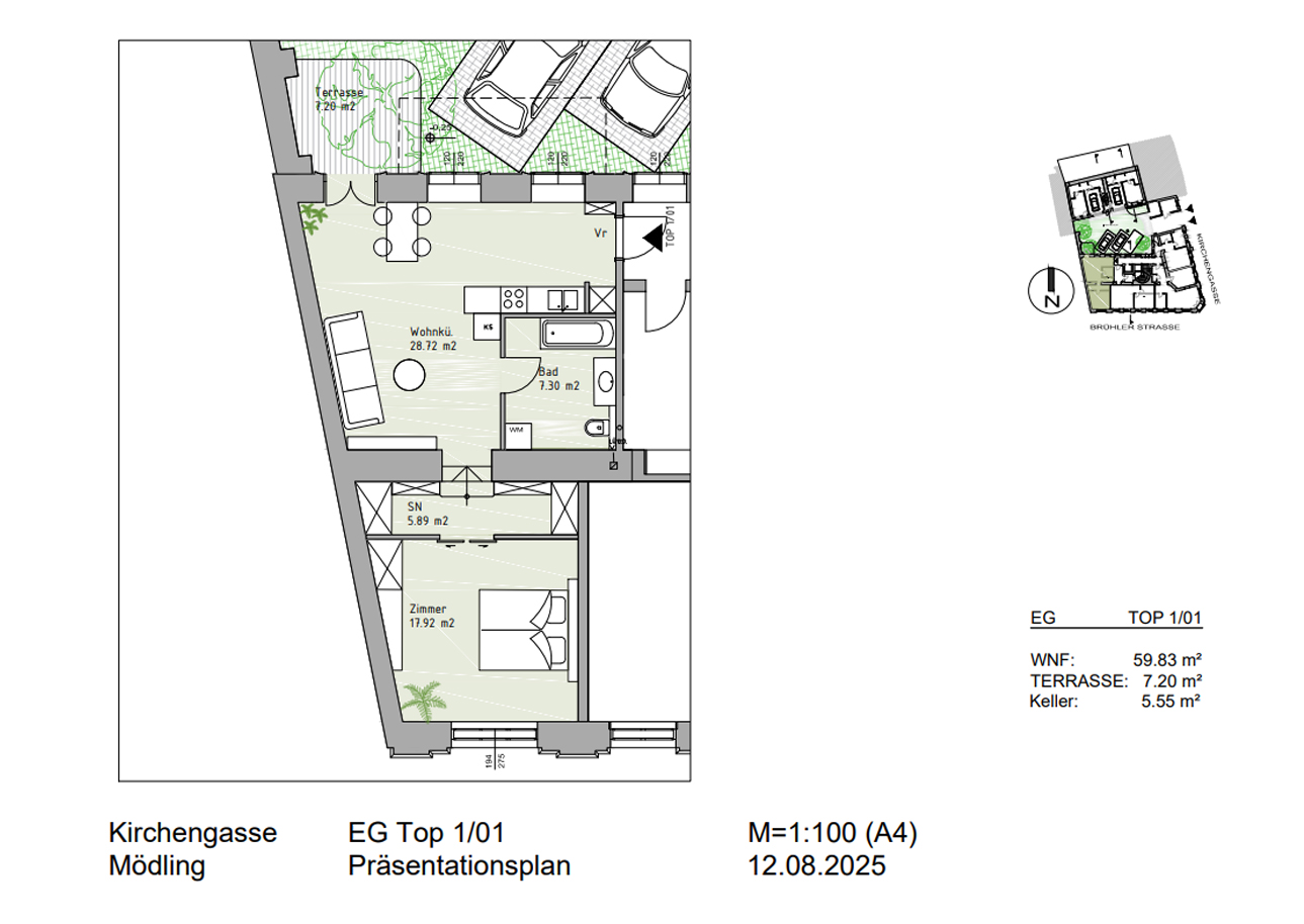 | 1/01 | EG | 2 | 59,83 | 7,20 (Terrasse) | 410.000 € | Verfügbar | Plan |