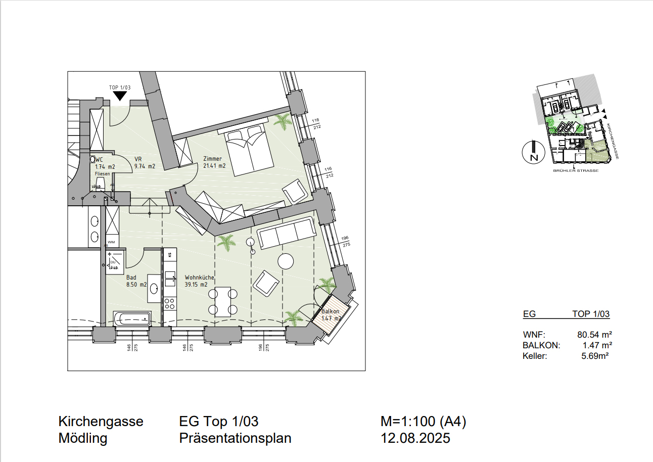 | 1/03 | EG | 2 | 80,54 | 1,47 (Balkon) | 530.000 € | Verfügbar | Plan |